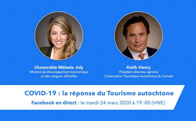 Le mardi 24 mars, le président-directeur général de l’ATAC, Keith Henry, a accueilli la ministre fédérale du Développement économique et des Langues officielles, l’honorable Mélanie Joly, pour s’adresser directement aux membres et partenaires de l’ATAC via Facebook Live. Ils ont abordé les mesures que le gouvernement adopte pour aider l’industrie touristique autochtone pendant la crise de la COVID-19 et les solutions que Mme Joly juge nécessaires pour soutenir l’industrie. Cliquez ici pour regarder la vidéo.