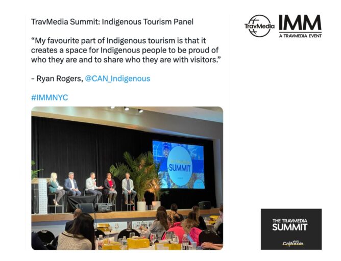 Ryan Rogers, ITAC’s award-winning Communications Manager, was in attendance alongside 6,270 travel brands who were meeting with approximately 11,600 top-tier media. Rogers had 24 pre-scheduled meetings with writers from outlets such as National Geographic, Travel + Leisure, Conde Nast Traveler, to name just a few. He also attended networking events and participated in a panel presentation about Indigenous Tourism during the TravMedia Summit with Tom Babin, Director of Marketing of Indigenous Tourism Alberta and representatives from Voyages Indigenous Tourism Australia, the American Indian Alaska Native Tourism Association and Chickasaw Country. The audience at the TravMedia Summit was approximately 500 top-tier media representatives from the United States and Canada along with global PR professionals.